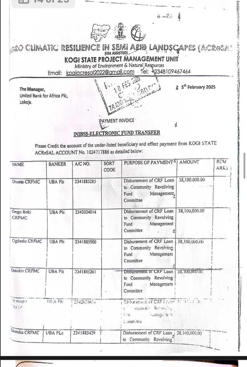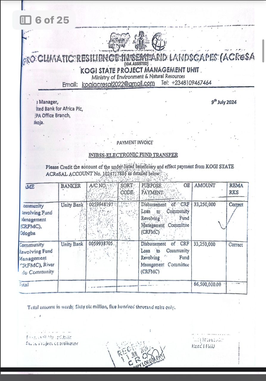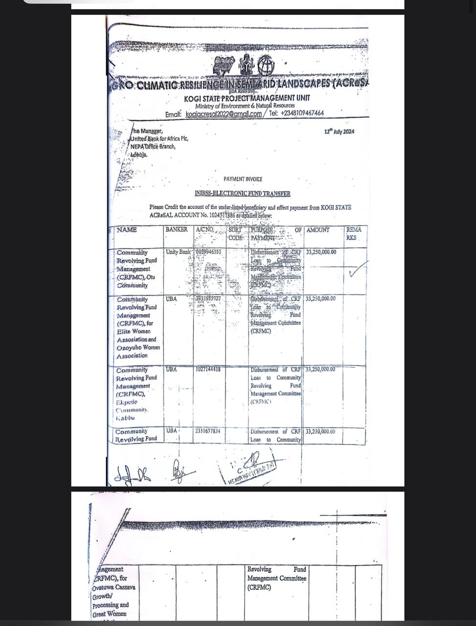 See attached documents provided by the government of Kogi state, exonerating Ododo from the allegation: