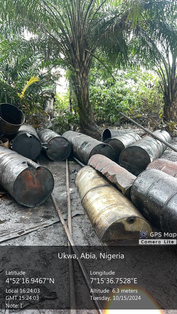 At the adjoining creeks, along the fringes of Imo River, over Fourteen illegal refining sites, 102 cooking drums, ten ovens, twelve boats were destroyed, with a number of dugout pits with over 15,000 litres of stolen products handled appropriately.