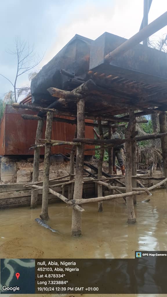 At Omoku in Ogba/Egbema/Ndoni Local Government Area (LGA), along River Ekpe-Mgbedei, troops deactivated two illegal refining sites, 3 large tanks filled with over 45,000 litres of stolen crude, 6 drums filled with over 1,200 litres of soda Automotive Gas Oil (AGO), two mini tanks with over 3,000 litres of stolen products. Others include 4 dugouts pits with over 12,000 litres of crude, 3 empty tanks, 3 sacks of stolen AGO estimated to be over 2,000 litres and 8 drums.