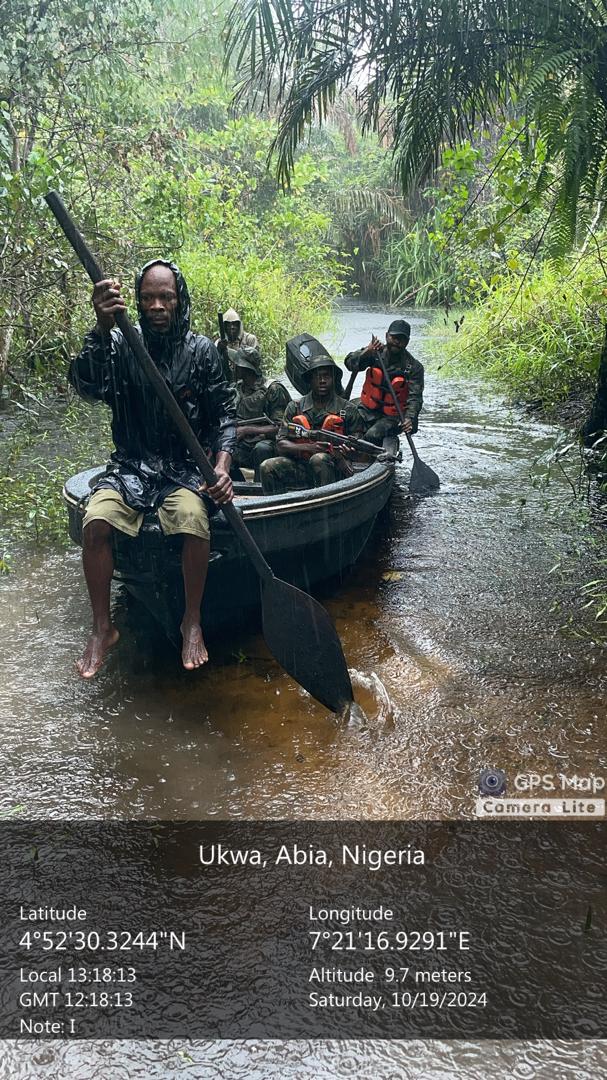 Meanwhile, in Bayelsa State, troops conducted several strangulation operations. This was evident at Olukama 1 and Amalaghakiri general areas in Nembe LGA, where two illegal refining sites were deactivated with over 5,000 of stolen products recovered.