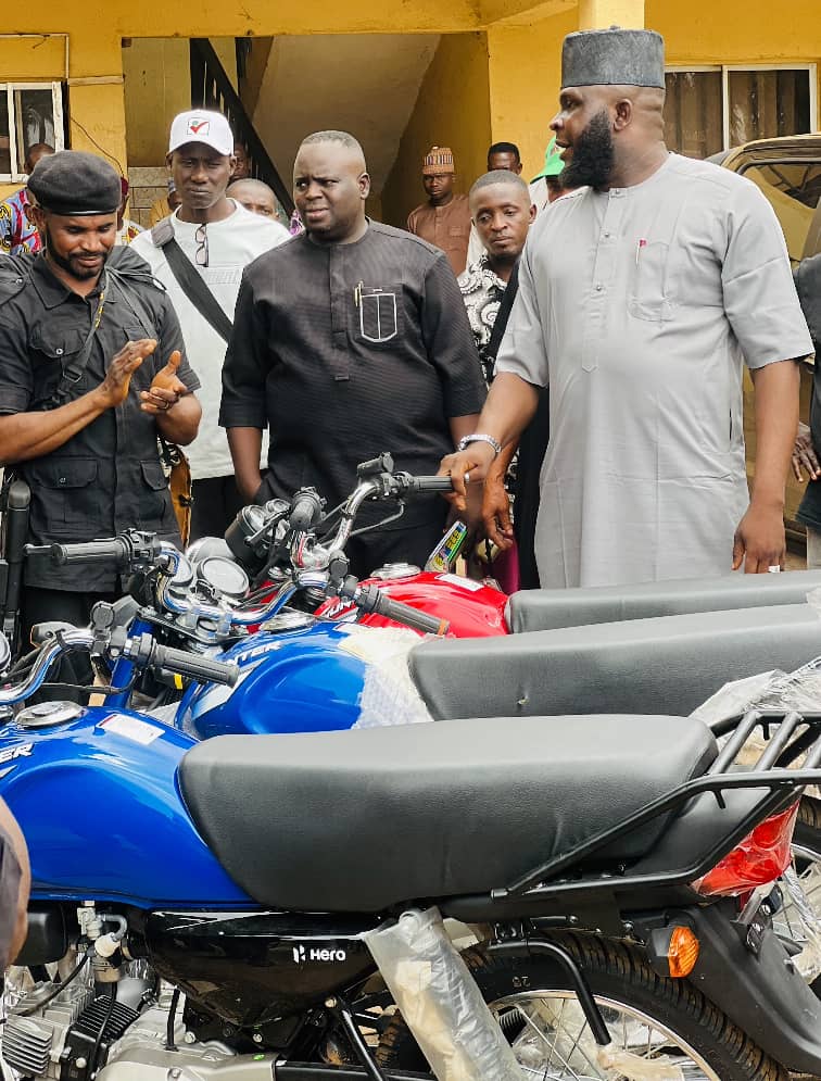 While handing the motorcycle and the bullet proof vest to them the Chairman thanked the Executive Governor of Kogi State His Excellency Alh. Ahmed Usman Ododo for his support and activeness in the fight against insecurity, he said H.E has already written his name in the heart of every Omala sons and daughters for relieving them as at when due and they promised to remain appreciative forever.